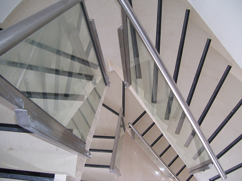 Interiores: ascensores, escaleras mecánicas, pasamanos, barandas, escaleras, manotones puertas blindex, cantoneras protectoras, accesorios para aguas pluviales, múltiples aplicaciones sanitarias: zócalos, tapas de cámara, cajas desagüe zifonadas, interceptores, canalinas y regueras son algunos de los elementos más típicos en los que se emplea el acero inoxidable.