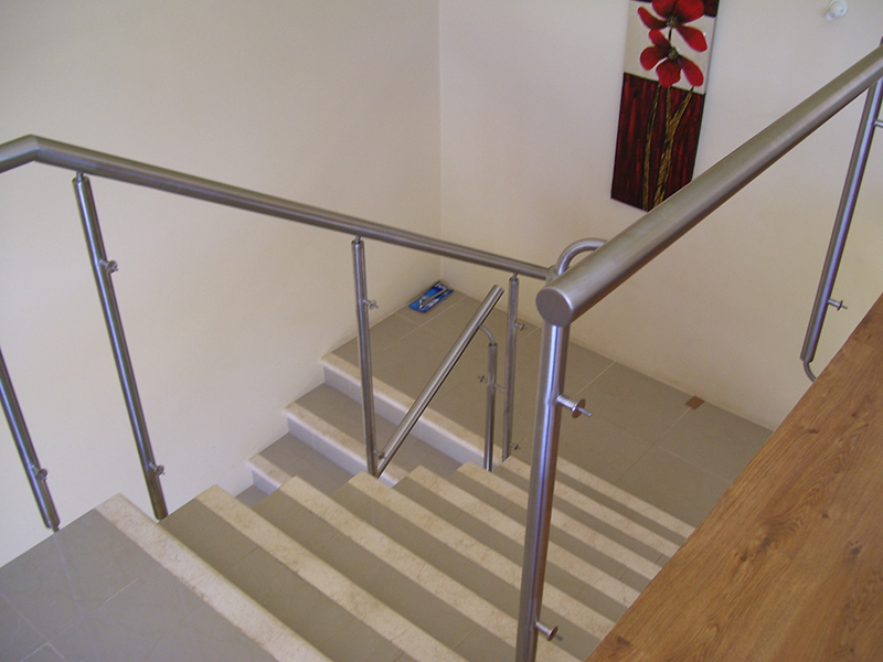 Barandas y pasamanos en caño redondo de acero inoxidable.